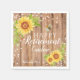 Ein elegantes, rustikales, gelbes Sonnenblumen Happy Retirement Party Napkin aus einem braunen Holzkorn Hintergrund mit einer hübschen blumengelben Sonnenblume mit einer Biene und eine Reihe von Lichtern. Die perfekte Tischdekoration aus Party für ein Party in der Rente. Personalisieren Sie mit einem Namen und Datum, um es extra zu machen. Alle Texte können bei Bedarf geändert werden, um das Element anzupassen.