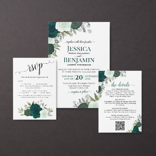 Emerald Green Watercolor Roses Boho Wedding SuiteDesignt von Cat Ritchie