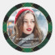 Rustikale grüne Karierte Imitate Gold Foto Weihnac Runder Aufkleber