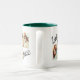 Moderne, rustikale grüne Weihnachtsferien-Tasse mit 4 Lieblings-Fotos. Im Text steht: "Liebe, Freude, Frieden."