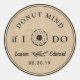 Maßgeschneiderte Hochzeitsdonut begünstigen Aufkleber/Etiketten mit rustikal handgezeichnet Stil Logo-Design auf Basis von Kraftpapiertextur. Personalisieren Sie mit den Namen der Braut und des Bräutigams und dem Hochzeitstag.