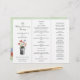 Dreifache Hochzeitsfeier mit einem rustikalen Aquarellbukett handgepflückter Blume in einem Milcheimer. Auf der Rückseite des Programms befindet sich ein grüner sommerlicher Aquarellspülhintergrund mit einer Wiese von Blume, Blumen wie Mohn, Maisblumen und Gras. Bitte beachten Sie: Wenn Sie den Papiertyp ändern, kann es schwierig sein, das Programm zu falten.