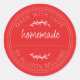 Rustikale, moderne und einfache hausgemachte Backwaren oder Konservenaufkleber mit hausgemachtem Text, mit Liebe und Ihrem Namen in weißer Schrift und Typografie auf hellrotem Hintergrund. Fügen Sie einfach Ihren Namen zum Label hinzu. Schreiben Sie die Produktnamen auf den Aufklebern, wenn Ihre Produkte fertig sind. Exklusiv für Sie entworfen von Happy Dolphin Studio. Wenn Sie Hilfe oder passende Produkte benötigen, kontaktieren Sie uns bitte über unseren Chat.