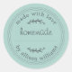 Rustikale hausgemachte Backwaren oder Konservenaufkleber mit hausgemachtem Text, mit Liebe und Ihrem Namen in moderner Typografie auf pastellblauem Hintergrund. Fügen Sie einfach Ihren Namen zum Label hinzu. Sie können die Produktnamen auf den Aufklebern schreiben, wenn die Produkte hergestellt werden. Exklusiv für Sie entworfen von Happy Dolphin Studio. Wenn Sie Hilfe oder passende Produkte benötigen, kontaktieren Sie uns bitte unter happydolphinstudio@outlook.com.