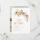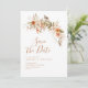 rustikale Herbstflora, bohemianisches Terrakotta-Design mit stilvollen modernen Schriften. Unsere schöne personalisierte Hochzeit speichern die Dattelkarten ein atemberaubendes Design, das jedes Hochzeitthema ergänzt. Auf der Vorderseite der Karte befindet sich ein personalisierter Text und ein schönes Bild.