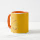 Die Tasse mit HELLO AUTUMN in der Schriftzeichen. Mit Kürbis und Blätter dekoriert.