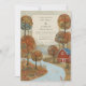 Situé dans un décor d'automne pittoresque, ce design saisit la chaleur d'une fête à la campagne. Un lac paisible et une charmante grange rouge entourent un feuillage coloré dans des tons orangés, dorés et pourpres. Les cygnes sereins et la rivière qui coule évoquent une atmosphère tranquille et nostalgique, parfaite pour une célébration intime enracinée dans la nature et l'élégance rustique.