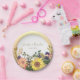 Feiern Sie Ihre Herbsthochzeit mit diesen wunderschönen, rustikalen Tellern aus Blumenblättern mit Aquarellblumen, Wildblumen und sanftem Herbstblättern in warmen, saisonalen Tönen. Personalisiert mit den Namen und dem Datum des Ehepaares, ist dieses Design ideal für Empfänge im Freien, für Stallhochzeiten oder für Boho-Fest-Events. Eine stilvolle und bequeme Wahl für Ihren Nachtisch, Probe Dinner oder Bridal Brunch.