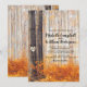 Herbstliche Hochzeitseinladungen mit einem rustikalen Fallwald mit roten, orangen und goldenen Blätter, silbernen Birkenbäumen, einem märchenhaften Herz auf dem Baum mit den Initialen der Braut und des Bräutigams und einer eleganten editierbaren Hochzeitsvorlage.
