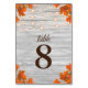 Rustikales graues Holz Streichelleuchten, goldene Glitzern & Herbstlaub Saisonale Tischnummer.