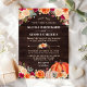 Rustikales Fall Orange Pumpkin Blumendesign mit orangefarbenen und roten Blume auf dunkelbraunem Holzboden