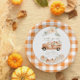 Rustikale Herbstpumpenwagen Karierte Babydusche Pappteller