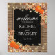 Rustikale Ernte Begrüßung Hochzeitsposter mit einem rustikalen, schicken Holzboden, schwarzem Kalkbrettkern, Seil, halloween pumpins, fallfoliage, Eicheln, Herbstblätterstreuung, Streichholzleuchten und einer personalisierten Textvorlage. Für weitere Personalisierungen klicken Sie bitte auf die Schaltfläche "Anpassen", um diese Vorlage zu ändern. Alle Textstile, Farben und Größen können nach Ihren Wünschen angepasst werden. Weitere passende Hochzeitsartikel findest du in meinem Shop www.zazzle.com/special_stationery, aber wenn du nicht findest, was du suchst, kontaktiere mich bitte.