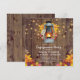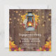 Rustikale Partyeinladungen mit Holzstall, Herbstblättern, Kerzenleuchte, Tinkelleuchten und modernem Hochzeitsgeschenk.