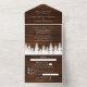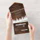 Genießen Sie den gemütlichen Charme einer Winterhochzeit mit diesem rustikalen Holz, das alles in einer Hochzeitseinladung vereint und ideal für Paare ist, die eine preiswerte Feier planen. Dieses erschwingliche Design mit einem reichen, dunklen Holzhintergrund und zarten Silhouetten aus weißem Kiefernwald verbindet den Charme der Wälder mit einer raffinierten Schrift-Typografie für einen zeitlosen Look. Mit einer integrierten RSVP-Karte, Wahlmöglichkeiten und Hochzeitsdetails bietet dieses Siegel-und-Sende-Angebot (auch bekannt als gefaltete Hochzeitseinladung , all-inclusive Hochzeitseinladung, dreifacher Hochzeitseinladung, 3 in 1 Einladung) eine bequeme und erschwingliche Lösung. Dieses Design ist perfekt für eine Scheunenhochzeit, Bauernhausfeiern, Bergevent, Winterhochzeit im Landhausstil oder eine rustikale Ansammlung. Es verbindet natürliche Eleganz mit Praxisnähe. Egal ob Sie eine Schneefeier oder eine gemütliche Landschaft beherbergen, diese individuelle und günstige Einladung Set die Bühne für Ihre unvergessliche Winterhochzeit.