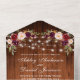 Rustikale Hochzeit, Watercolor Burgundy Floral, Holz und String Lights Hochzeit All In One Einladung mit RSVP Card beinhaltet burgundische Rose, rosa Rosen, rote Rosen und botanische Vegetation.