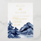 Diese Hochzeitseinladung zeigt wunderschöne wasserfarbene blaue Berge und Bäume, mit moderner Kalligraphie Typografie in REAL GOLD FOIL. Karo in unseren Hochzeitskollektionen, um die passenden Produkte zu finden, um Ihren besonderen Tag noch schöner zu gestalten, und beeindrucken Sie Ihre Gäste mit diesem schönen Design.