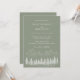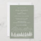 Mit dieser schlanken grünen Einladung laden wir Sie zu einer rustikalen Hochzeit mit einer Bergskizze und Waldkiefern ein. Ideal für naturlich inspiriert Feiern, kombiniert er erdige Töne mit elegantem Design und schafft so die Bühne für einen ruhigen und unvergesslichen Tag.