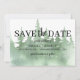 Rustikale Hochzeit im Aquarellwald bewahrt das Datum mit grünem Kiefernwald.