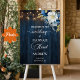 Ein elegantes Hochzeitsdesign mit eleganter Kalligrafie, ergänzt durch wunderschönes blaues Holz, grüne Saitenleuchten und weißblaue Blumen mit goldenem Glitzer. Sie können dies mit Ihren Daten personalisieren.