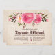 Schönes rosa Rosen rustikales / Vintages Blumendesign auf Grunge Burlap Hintergrund (Sie können die Hintergrundfarbe ändern, um Ihre eigene Burlap Farbe für den Design-Hintergrund) Einladungskarte