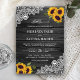 Rustikale Hochzeit mit grauem Holz und Sonnenblume Einladung