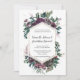 Goldrahmen der geometrischen Rose, umgeben von rustikalen Blume in Aquarelltönen und Grünpflanzen in den Farben Bordeaux, Grau und aquamarines, dunkles Grün. Die Rückseite der Karte ist dunkel aquamarin grün. Die Textfelder sind einfach zu personalisieren mit eigenen Informationen.