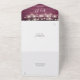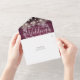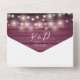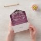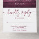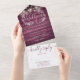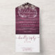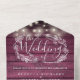 Alles in einer Hochzeitseinladung mit hübschen Saitenlichtern, handgezeichnet Blumengarten und schicker Typografie auf rustikalem bordeauxrotem Holzpaneelenboden. Die Einladung enthält eine perforierte RSVP-Karte, die für Sie individuell adressiert oder links als leere Karte für die Handschrift der Adressdaten Ihres Gastes verwendet werden kann. Entwickelt von Thisisnotme©