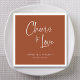 Fügen Sie Ihrem Hochzeitstag eine Touch rustikalen Charmes mit unseren personalisierten Servietten hinzu. Diese Servietten sind mit einem schönen, handgeschriebenen "Beifall zur Liebe"-Satz in weißer Tinte, sowie mit Ihren Namen und Ihrem Hochzeitstag versehen. Das Terrakotta-Hintergrunddesign eignet sich perfekt für eine rustikale Hochzeit. Die Servietten eignen sich für verschiedenste Anlässe, wie Brautpartys, Verlobungen oder Jubiläen. Merkmale: - Rustikales Terracotta-Hintergrund-Design - Handgezeichneter "Beifall zur Liebe" Satz in weiß Tinte - Personalisiert mit Ihren Namen und Hochzeitstermin - Hochwertige 3-Blatt-Papierkonstruktion Bestellen Sie Ihre rustikalen Hochzeitsnapkins mit dem Namen personalisiert heute und machen Sie einen bleibenden Eindruck bei Ihren Gästen!