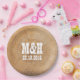 Rustikale Ringringe aus Hochzeitsholz Papier Teller.Passen Sie die Initialen der Braut und des Bräutigams und das Datum der Hochzeit an.
