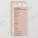 Das Rustic Lace Wedding Programm, das Ihr Land oder Ihre Scheune perfekt ergänzen soll. Dieses Programm präsentiert eine zeitlose, von Hand gezeichnet, weiße, blumengeschmückte Kulisse in einem geometrischen Rahmen, in der Ihre Zeremonie Details und die Informationen über Hochzeitsfeier elegant in einer ausgeklügelten, klassischen Typografie präsentiert werden.