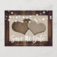 Komplement your rustic-themed wedding with these easy to personalize save the date postcards ideal for a rustic country, or barn wedding party inspirred by burlap.