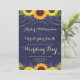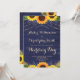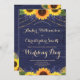 Dieses rustikale Landdesign besticht durch goldene Saitenlichter und Spitzen mit Sonnenblumen und Lavendel-Sprigs vor einem marineblauen indigoischen Holzboden. Der Text mit anpassbaren Braut- und Bräutigam-Namen und Veranstaltungsdetails erscheint in blassem Gold in beliebter Schrift- und Serifentypografie. Sie können diese Einladung für Ihre eigene Hochzeit personalisieren, indem Sie den Text in der Vorlage ändern.