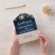Diese preisgünstigen Rustikalen Navy-Holzstring-Light-Wedding-Einladungen sind mit einer durchsichtigen, perforierten UAWG-Postkarte gestaltet. Falten Sie einfach jede Karte in die umrissene Form, und dann Siegel und senden - kein Umschlag für den Versand erforderlich.