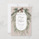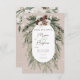 Dieses Design ist mit einem rustikalen grünen Kiefer und einem pineconfarbenen Bouquet auf einem weichen beigen Hintergrund mit weißen Blume gestaltet. Es wird durch ein weißes, glänzendes Overlay hervorgehoben, um den Zauber der schönen Winterferien zu veranschaulichen. Ideal für eine Weihnachts- oder Winterhochzeit. Diese Karte ist Teil der rustikalen Tan Pine Winter Sparkle Wedding Suite, die von Simply Farmhouse Press kreiert wurde.