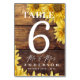 Rustikale Hochzeitsfeier mit Sonnenblumen Tischnummer