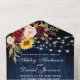 Rustikale Hochzeit, Watercolor Burgundy Floral, Blaues Holz und Streichellichter Hochzeit All In One Einladung mit RSVP Card beinhaltet bordeauxrote Rose, rosa Rosen, rote Rosen, Sonnenblumen und botanisches Grün.