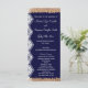 Die vertikalen Hochzeitsprogramme haben einen marinen Hintergrund und eine bedruckte Spitze und eine Einengung um die Kanten. Fügen Sie Ihre Hochzeitsreihenfolge und die Informationen zu Hochzeitsfeiern sowohl auf der Vorderseite als auch auf der Rückseite des Programms hinzu. Sie können beliebige Textfelder aus der Schaltfläche "Anpassen" hinzufügen oder löschen.