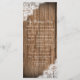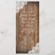 Elegantes und dennoch rustikales Brauchtum-Hochzeitsprogramm mit gedruckten Spitzen-Rändern. Diese Karten Stock Hochzeitsprogramme haben gedruckte weiße Spitzen-Designs in den Ecken. Der Hintergrund ist ein beängstigendes rustikales Stallholzdesign. Das ist ein zweiseitiges Design. Benutzen Sie einfach die Vorlagenfelder, um Ihre eigenen Details zur Hochzeitsfeier hinzuzufügen, oder benutzen Sie die Schaltfläche "Anpassen", um Textzeilen hinzuzufügen oder zu löschen oder Dinge zu verschieben. Das ist ideal für Hochzeitsfeiern auf dem Lande: rustikales Hochzeitsprogramm, preiswerte Hochzeitsprogramme, Hochzeitsfeiern, elegante, zweiseitige Hochzeitsfeier, einfache, elegante Hochzeitsprogramme, Hochzeitsfeier auf dem Land, Hochzeitsfeier mit Stallholz, rustikales Holz, Holz und Spitzen