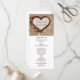 Rustikale Landzwirn Herz Vertikale Hochzeitsprogramme. Die Oberseite hat einen zwirnenden Hintergrund und einen knackigen Hintergrund. Die Erholung des Programms ist weiß mit braunen Buchstaben. Das sind großartige Hochzeitsprogramme für Hochzeiten auf dem Lande. Fügen Sie einfach Ihre Reihenfolge der Zeremonie und Hochzeitsfeier Details hinzu. Wenn Sie Dinge bewegen möchten, benutzen Sie den Button "Anpassen". Matching-Elemente: