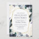 Elegante Hochzeitseinladungen mit einem trendigen, weißen Hintergrund, der in jede Farbe verändert werden kann, rustikalen bohobolblauen Aquarellfarben-Blume, einem goldenen geometrischen Rahmen, vergoldetem Glitzer und einer modernen Hochzeitsvorlage.