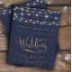 Schöne rustikale Holzdesign Hochzeitsvorlage. Goldkalligraphie auf einem dunkelblauen Hintergrund mit hübschen Saitenleuchten, die die Oberseite des Designs verzieren. Enthält auch UAWG Details und ist einfach mit Ihren eigenen Details zu gestalten.