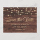 Rustikale Holz-String-Lichter Hochzeit speichern d Ankündigungspostkarte