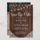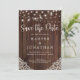 Rustikale Holz String Lights and Lace Wedding Save the Date Foto Announcement mit einem rustikalen Holzhintergrund mit funkelnden Lichterketten und Vintager Stilspitze in den unteren Ecken. Die Wörter "Save the Date" sind in eleganter und dennoch rustikaler Typografie Set, was das perfekte Design für Ihre Hochzeit auf dem Land oder auf dem Bohou macht. Fügen Sie Ihr Foto auf die Rückseite für die perfekte Ankündigung Ihrer spannenden Neuigkeiten!