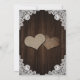 Rustikale Hochzeitskarte Save the Date, die auf einem Stallholzhintergrund mit weißer Blumenspitze und Lichtern der Saitenreihen die Herzen des Burgdorfes schmückt.