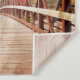 Tapestry mit einem landschaftlichen Foto. Eine Holzbrücke führt zu einem Weg, der von farbenwechselnden Waldbäumen umgeben ist.