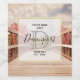 Personalisierte Flaschenetiketten mit einem landschaftlichen Foto. Eine Holzbrücke führt zu einem Weg, der von farbenwechselnden Waldbäumen umgeben ist. Halbtransparentes Quadrat (mit einem Imitat mit Goldfolienrand) Overlay mit dem Text im Inneren.