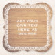 Rustikaler hölzerner Spitze-Hochzeits-Papier-Untersetzer mit Ihrem eigenen personalisierten kundenspezifischen Text. Addieren Sie jeden möglichen Namen oder Text, die Sie wünschen, einen Spaß-Untersetzer für die Hochzeitsgäste herzustellen.