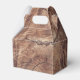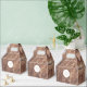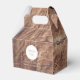 Dieses Design ist mit einem rustikalen Holzfußboden versehen. Der einfache, braune Holzhintergrund wird durch den weißen Text und das moderne, saubere mittlere kreisförmige Element ergänzt, das den Titel umgibt. Die Brauntöne des Holzkorns schaffen ein rustikales Waldgartengefühl. Elegantes Hochzeitsgunst-Box-Design mit modernen Elementen. Auch die passenden Hochzeitseinladungen und andere Schreibwaren sind verfügbar.