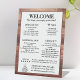 Personalisiertes rustikales Begrüßungsschild für eine Hüttenvermietung, Airbnb, Ferienhaus oder B&B. Mit einem Holzputz-Hintergrund (Bild gedruckt) und einem Logo-Design mit Bergen, die Sie ersetzen oder verlassen, wie mit dem etablierten Jahr, neben dem Namen des Ortes, Adresse, Kontaktnummer und E-Mail. Bearbeiten Sie den Text, um jeden beliebigen Text für die Hausregeln, WLAN, Karo-out und zusätzliche Informationen für Ihre Gäste hinzuzufügen.